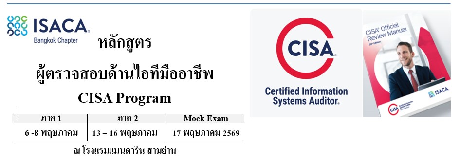 - หลักสูตรเตรียมเป็นผู้ตรวจสอบด้านไอทีมืออาชีพ (CISA Examination Preparation Program)
