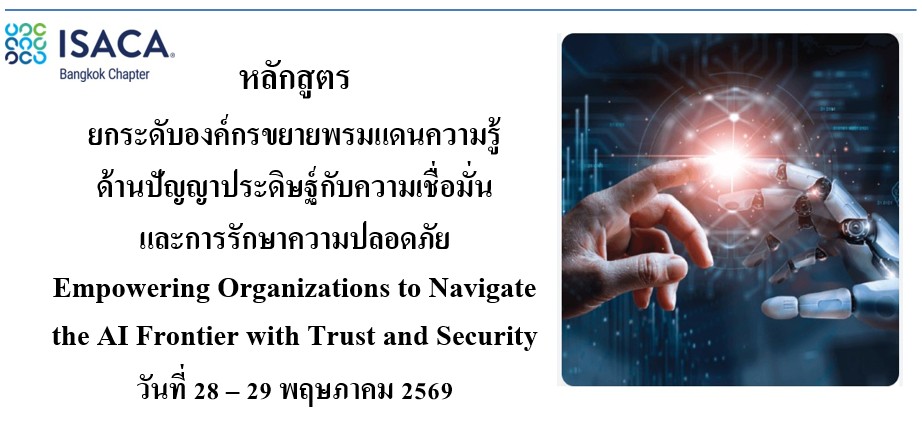 « All Events Empowering Organizations to Navigate the AI Frontier with Trust and Security ยกระดับองค์กรขยายพรมแดนความรู้ด้านปัญญาประดิษฐ์กับความเชื่อมั่นและการรักษาความปลอดภัย พฤษภาคม 28 @ 9:00 am - พฤษภาคม 29 @ 4:00 pm UTC+7 « Using COBIT for Effective AI Governance การใช้ COBIT สำหรับการกำกับดูแลปัญญาประดิษฐ์อย่างมีประสิทธิภาพ Building Trust in The Age of Artificial Intelligence ธรรมาภิบาลและความเชื่อมั่นด้านเอไอในองค์กรในยุคปัญญาประดิษฐ » + Google Calendar+ Add to iCalendar ค่าธรรมเนียมหลักสูตร (รวมภาษีมูลค่าเพิ่ม 7% แล้ว) ราคาปกติ สมาชิก ISACA 12,840.00 บาท สมาชิก IIA, ITSMF และองค์กรที่มีผู้สมัครตั้งแต่ 3 คนขึ้นไป 13,910.00 บาท บุคคลทั่วไป 14,980.00 บาท รายละเอียดหลักสูตร วันเริ่มต้น: พฤษภาคม 28 @ 9:00 am วันสิ้นสุด: พฤษภาคม 29 @ 4:00 pm CPE : 12 ดาวน์โหลดโบรชัวร์ ลงทะเบียนออนไลน์ Organizer ISACA BANGKOK Phone: 089-777-0900 Email: training@isaca-bangkok.org Website: https://isaca-bangkok.org/ Venue โรงแรมแมนดาริน ุุ662 Rama IV Road Bangrak, Bangkok 10500 Thailand + Google Map Phone: 022380230 Website: https://www.mandarin-bkk.com/